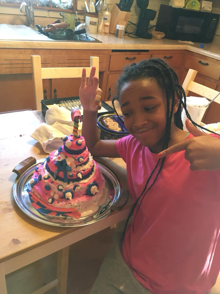 She opened her gift and we planned the cake that she wanted to make on Saturday.